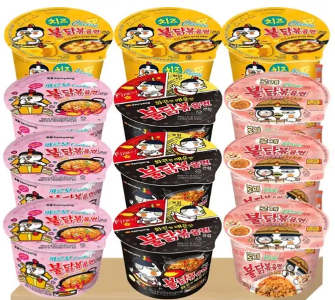 Juego variado de tazas grandes Samyang Buldak Ofrece la mejor experiencia de fideos picantes coreanos en un paquete completo. Este set incluye 3 Buldak Hot Chicken Big Cups, 3 Buldak Carbo Big Cups, 3 Buldak Cheese Big Cups, 3 Buldak Rosé Big Cups, más 3 palitos de ramen Buldak.